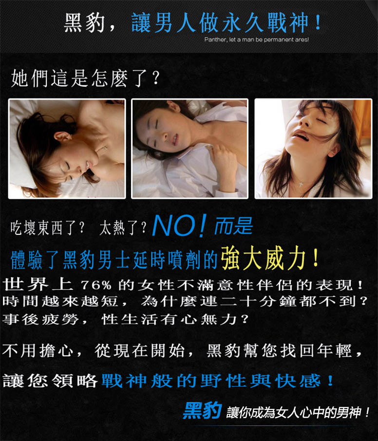 答:由日本醫師多年潛心研究,針對亞洲人皮膚特性而研製的日本黑豹,很多成分是可以在化妝品中找到的素材,而特別添加的基苯甲酸甲酯, 具有促進血液循環,滋陰壯陽的效果。 因此日本黑豹是絕對安全的,並且沒有任何副作用,停止使用後,性機能只會增強而不會衰退!