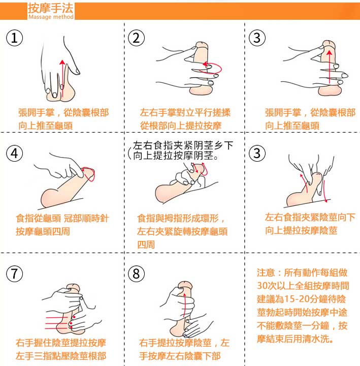 1、按摩強度或壓力不宜過大,因為這樣會切斷陰莖的血液迴圈,若你感覺到不適和疼痛,應暫停使用一段時間。